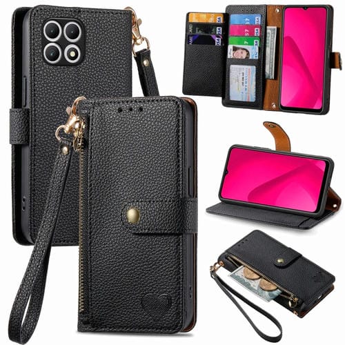 Funda de Cuero para T-Mobile T Phone 2 5G con Love Zipper Lanyard (Negro)