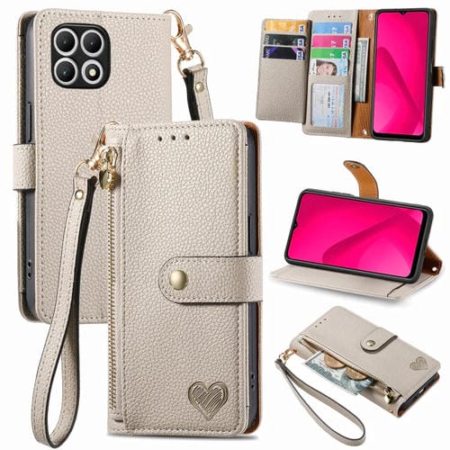 Funda de Cuero para Teléfono T-Mobile T Phone 2 Pro 5G Love Zipper Lanyard (Gris)