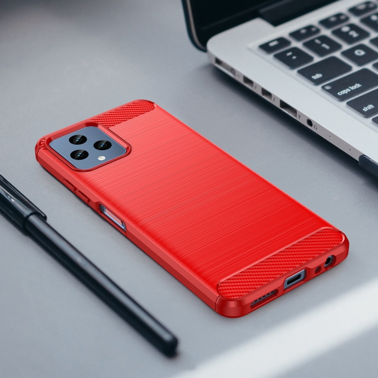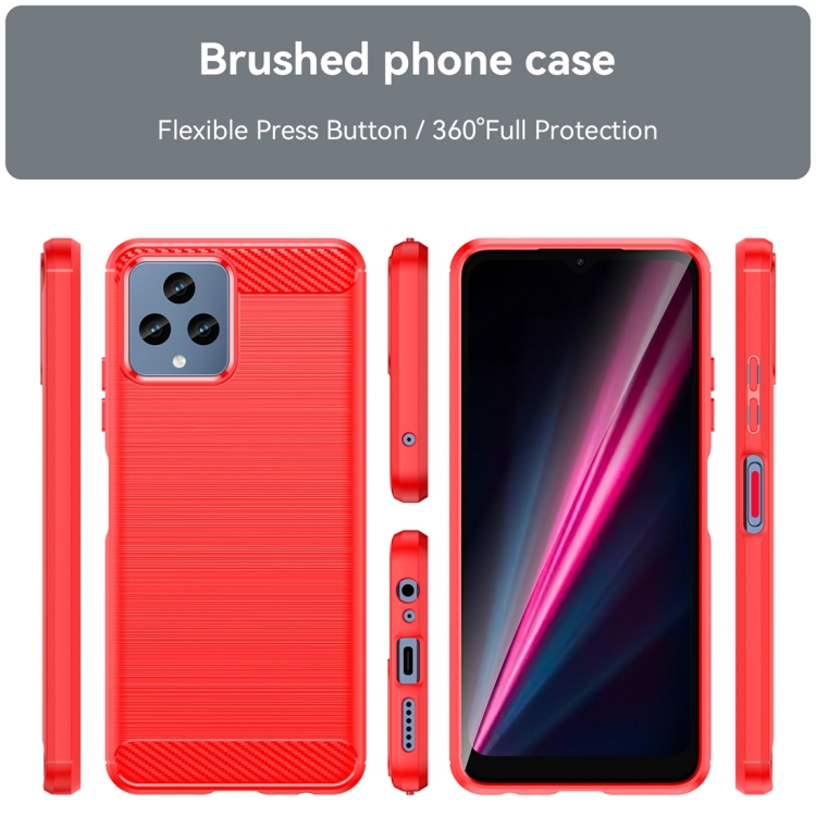 Funda TPU para T-Mobile T Phone 5G con Textura Cepillada de Fibra de Carbono (Rojo)