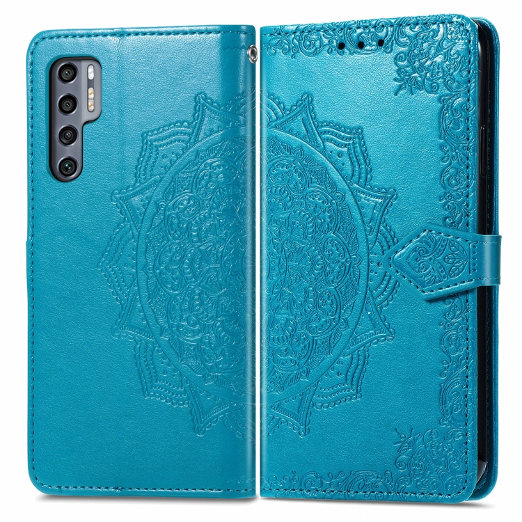 Funda de Cuero Horizontal Flip para TCL 20 Pro 5G Mandala Flower con Soporte, Ranura para Tarjeta, Billetera y Cordón (Azul)