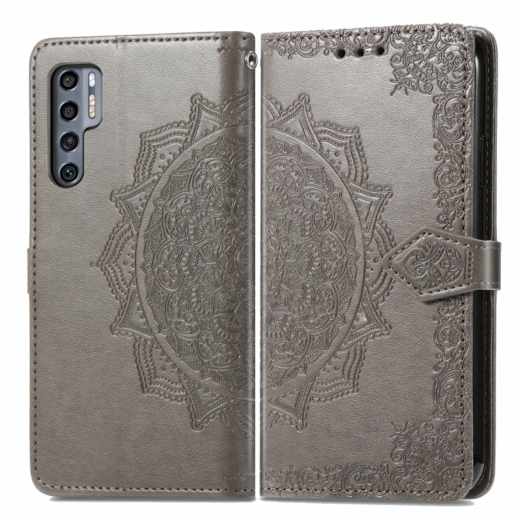 Funda de Cuero Horizontal Flip para TCL 20 Pro 5G Mandala Flower con Soporte, Ranura para Tarjeta y Billetera (Gris)