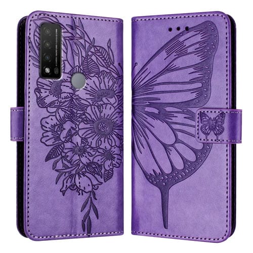 Funda de Cuero para TCL 20 R 5G con Mariposa en Relieve (Púrpura Claro)
