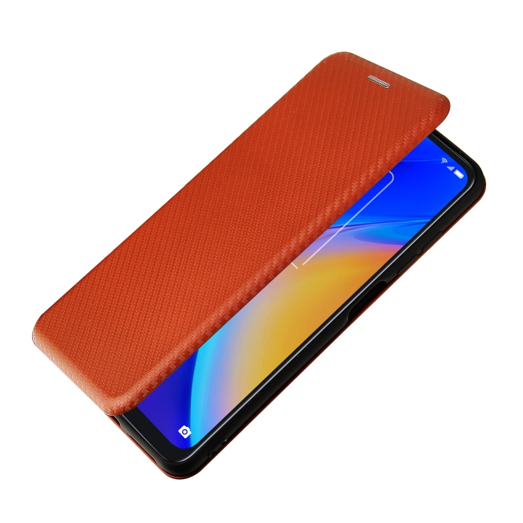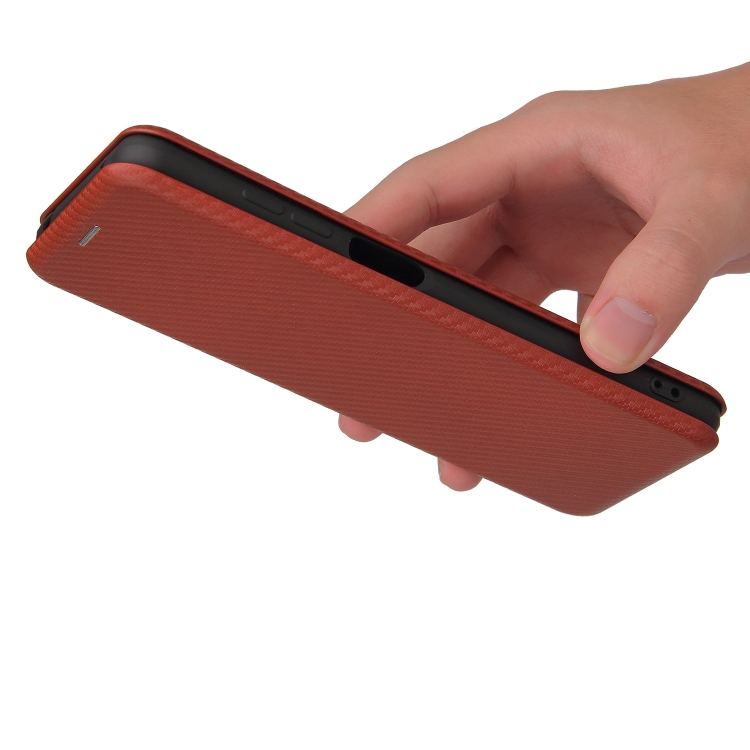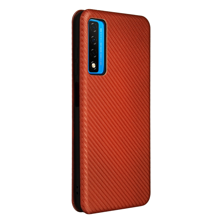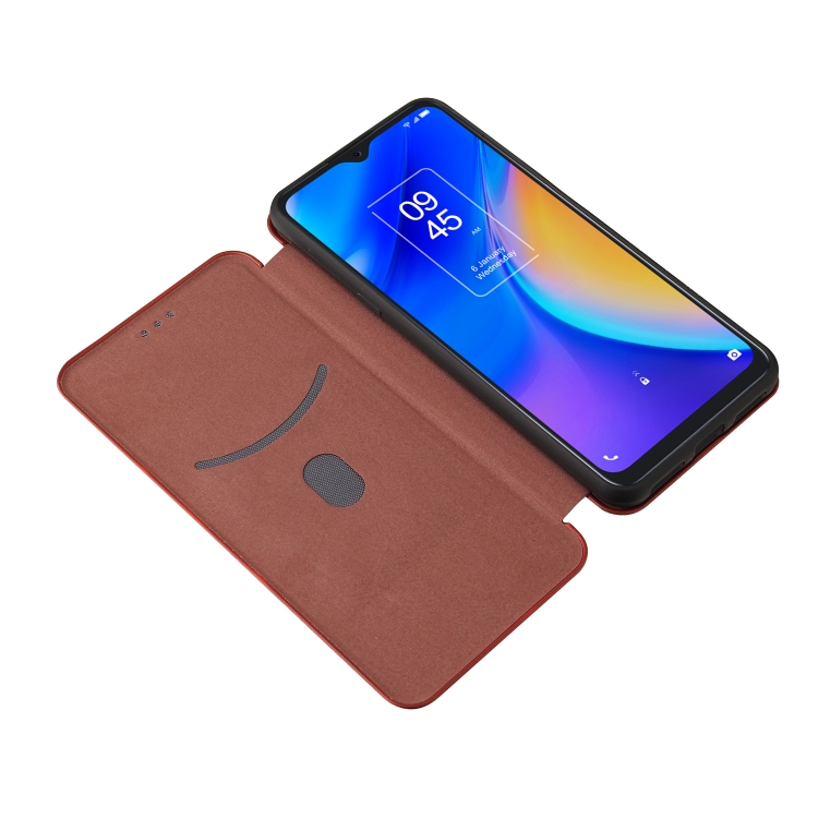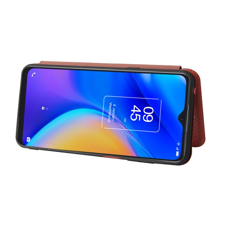 Funda para TCL 20S Textura Fibra de Carbono Magnético Horizontal Flip TPU PC Cuero Pu con Ranura para Tarjeta (Marrón)