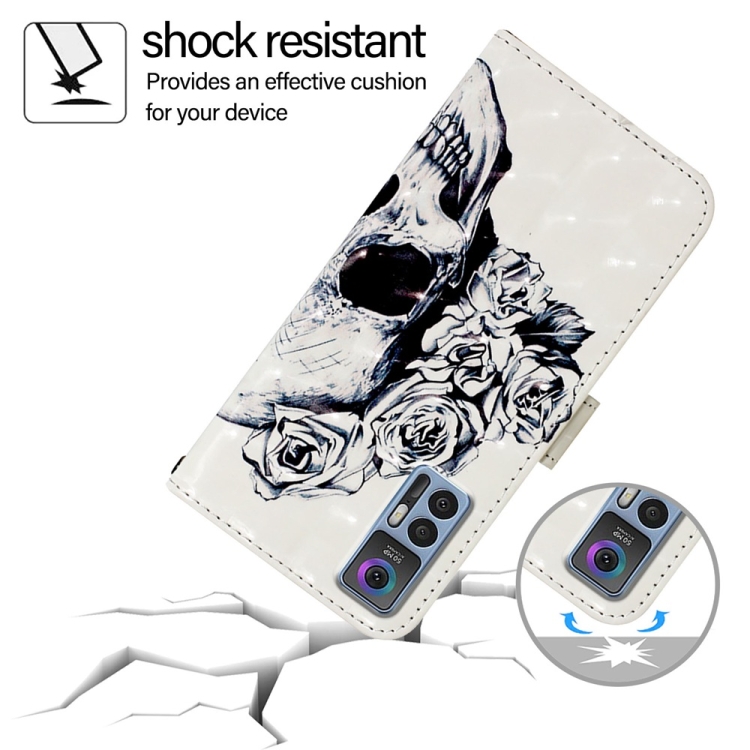 Funda para TCL 30+ de Cuero con Tapa Horizontal y Pintura 3D Calavera