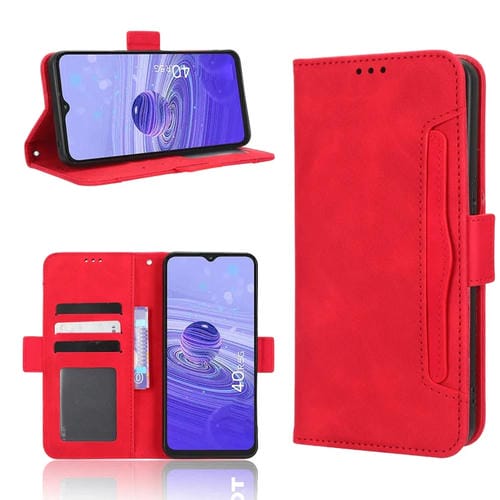 Funda de Cuero para Teléfono TCL 40 R 5G Skin Feel con Ranuras para Tarjetas (Rojo)
