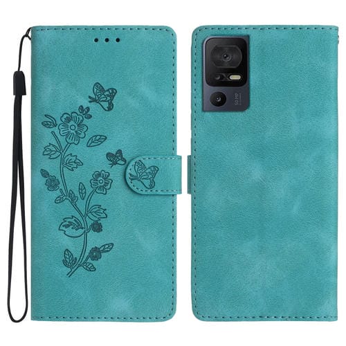 Funda de Cuero para TCL 40 Se con Patrón Flower Butterfly Relieve (Azul Cielo)