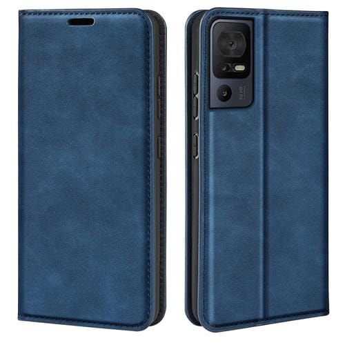Funda de Cuero para TCL 40 Se con Succión Magnética de Piel Retro (Azul Oscuro)