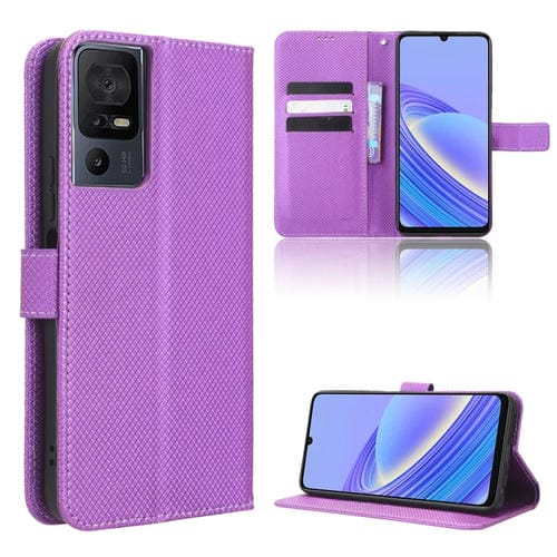 Funda de Cuero para TCL 40 Se con Textura de Diamante (Púrpura)