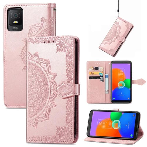 Funda de Cuero para TCL 403 Mandala Flower en Relieve (Oro Rosa)