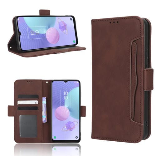 Funda de Cuero para Teléfono TCL 405/406 T506D con Textura Becerro y Ranuras para Tarjetas (Marrón)