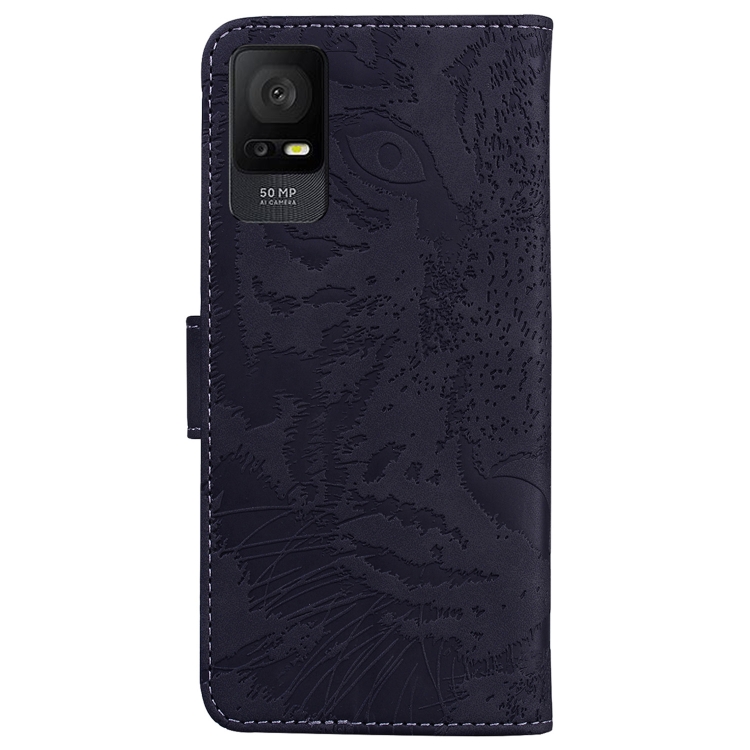 Funda Flip de Cuero para TCL 408 Tiger con Patrón Embossing (Negro)