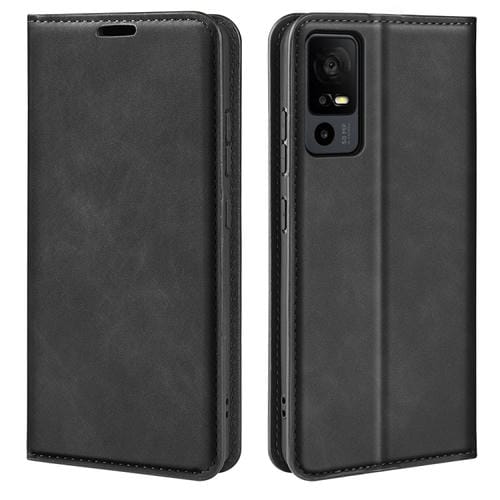Funda de Cuero para TCL 40R con Succión Magnética de Piel Retro (Negro)