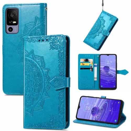 Funda de Cuero para TCL 40R Mandala Flower con Relieve (Azul)