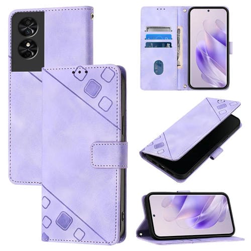 Funda de Cuero Skin Feel para TCL 50 Se en Relieve (Púrpura Claro)