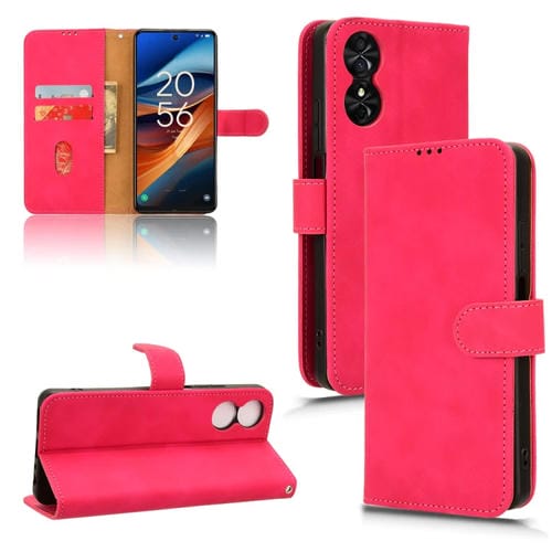 Funda de Cuero para TCL 50 Se Skin Feel con Tapa Magnética (Rojo Rosa)