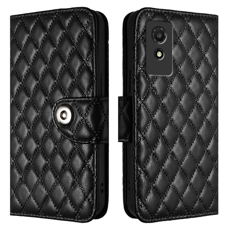 Funda de Cuero para TCL 501 con Tapa Textura Rómbica y Cordón (Negro)