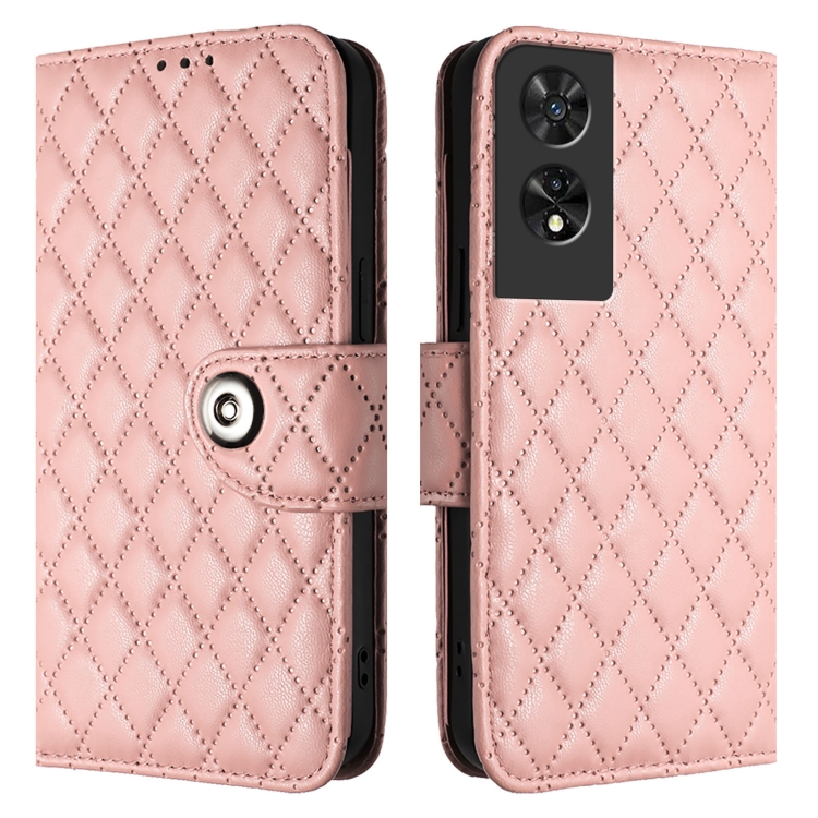 Funda para TCL 505 de Cuero con Tapa Textura Rómbica y Cordón (Rosa Coral)