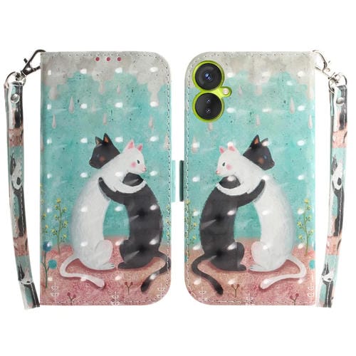 Funda de Cuero para Tecno Camon 19 Neo 3D con Tapa Horizontal (Gato Blanco y Negro)