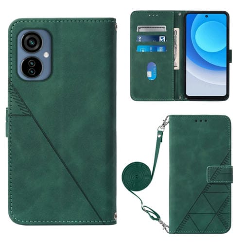 Funda Flip de Cuero para Tecno Camon 19 Neo Crossbody 3D en Relieve (Verde Oscuro)