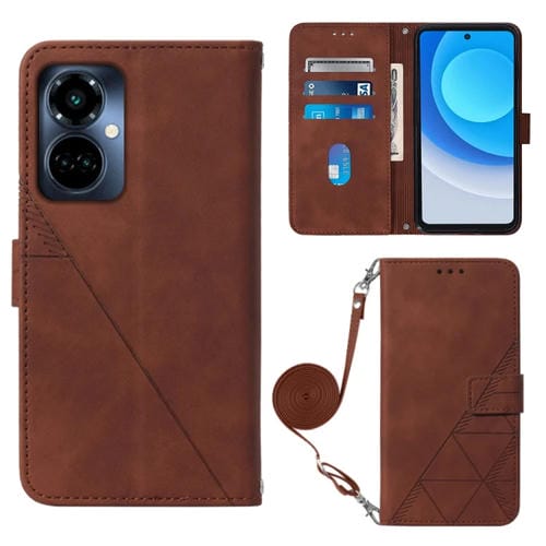 Funda de Cuero para Tecno Camon 19 Pro 5G Crossbody 3D con Tapa en Relieve (Marrón)
