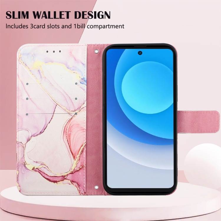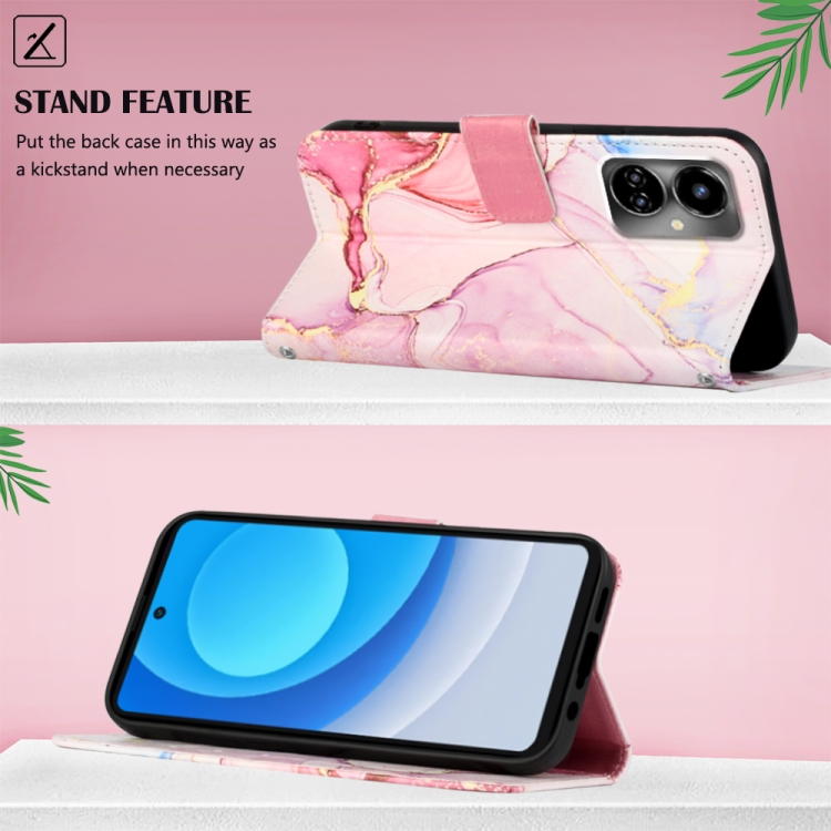 Funda de Teléfono Tecno Camon 19 Pt003 con Tapa de Cuero y Patrón de Mármol (Oro Rosa)