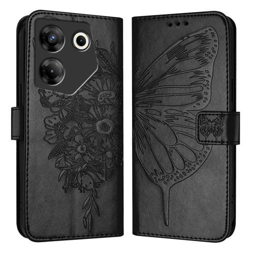 Funda de Cuero para Tecno Camon 20 Pro 5G con Mariposa en Relieve (Negro)