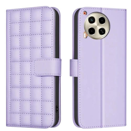 Funda de Cuero para Tecno Camon 30 5G / 4G con Textura Cuadrada (Púrpura)