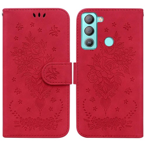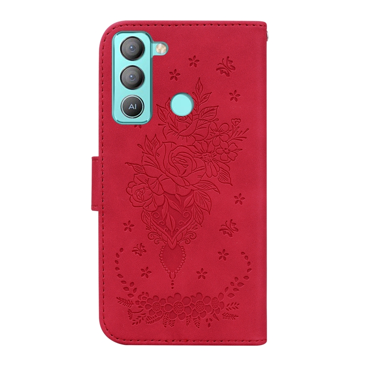 Funda para Tecno Pop 5 Lite Bd4 Butterfly Rose Rossed Leather Case (Rojo)