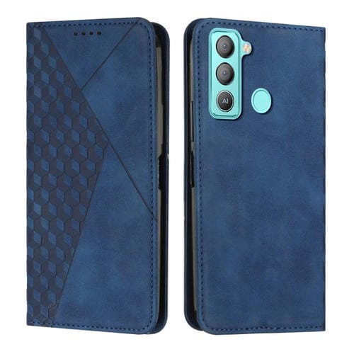 Funda de Teléfono Tecno Pop 5 Lte Diamond Splicing Cuero Magnético (Azul)