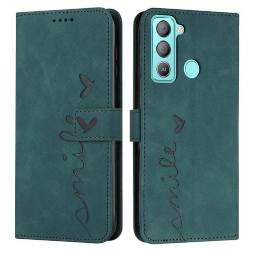 Funda para Tecno Pop 5 LTE Skin Feel Patrón de Corazón Caja de Cuero (Verde)