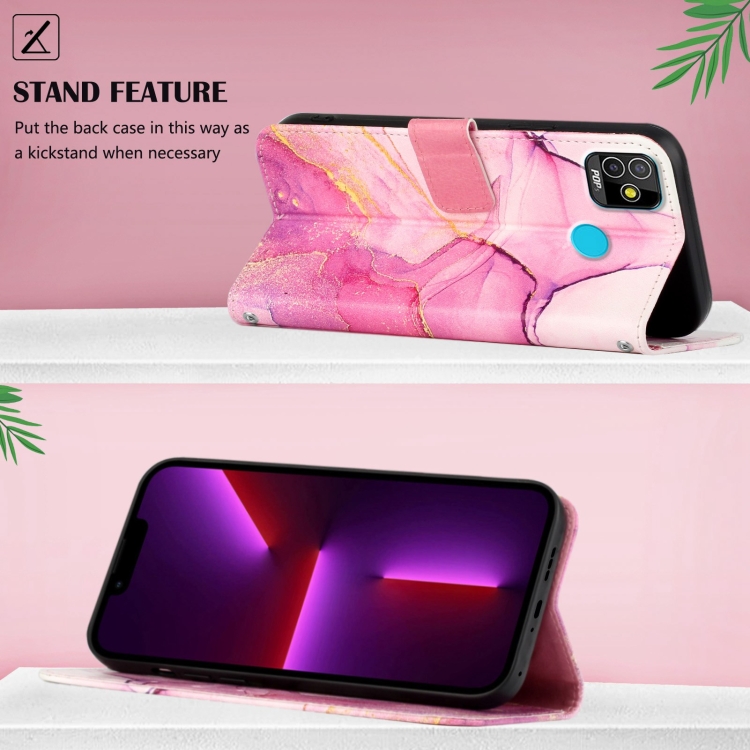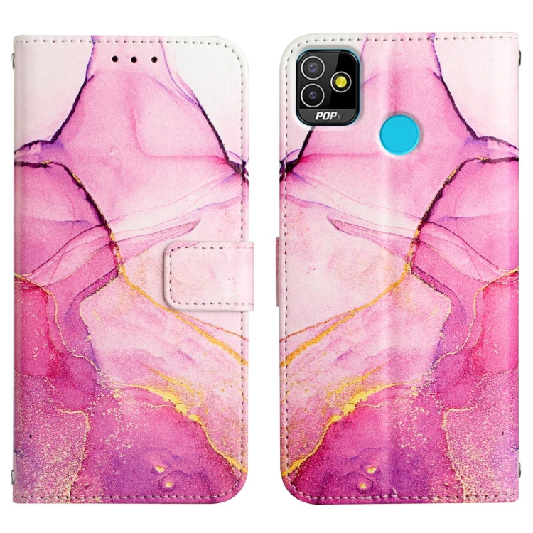 Funda de Cuero Pliegue para Tecno Pop 5 Pt003 Patrón Mármol (Rosa Purple Gold)