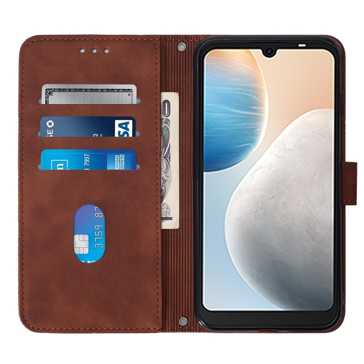 Funda de Cuero Flip 3D en Relieve para Tecno Pop 6 Crossbody (Marrón)