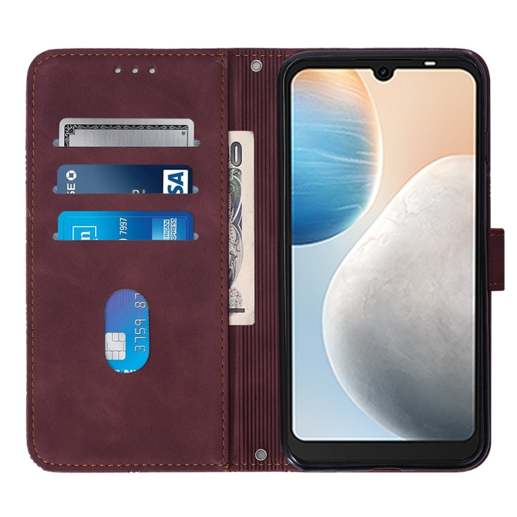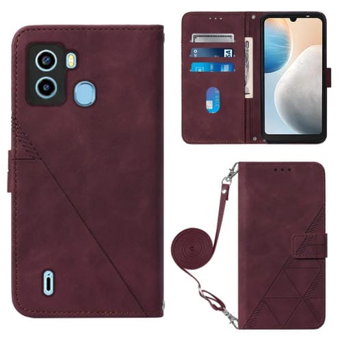 Funda de Cuero para Tecno Pop 6 Crossbody Flip 3D En Relieve (Rojo Vino)