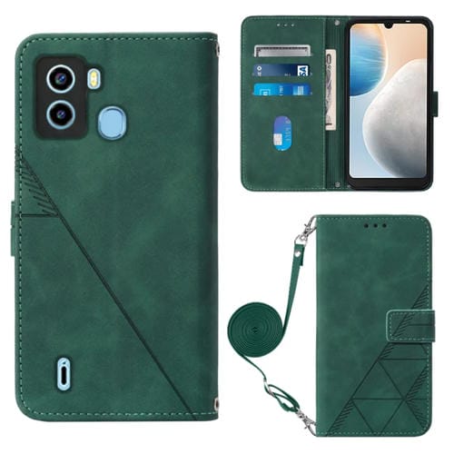 Funda Flip de Cuero para Tecno Pop 6 Crossbody 3D En Relieve (Verde Oscuro)