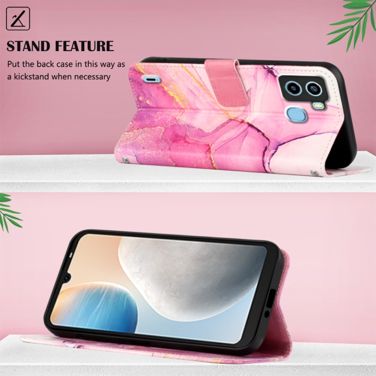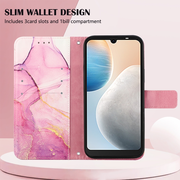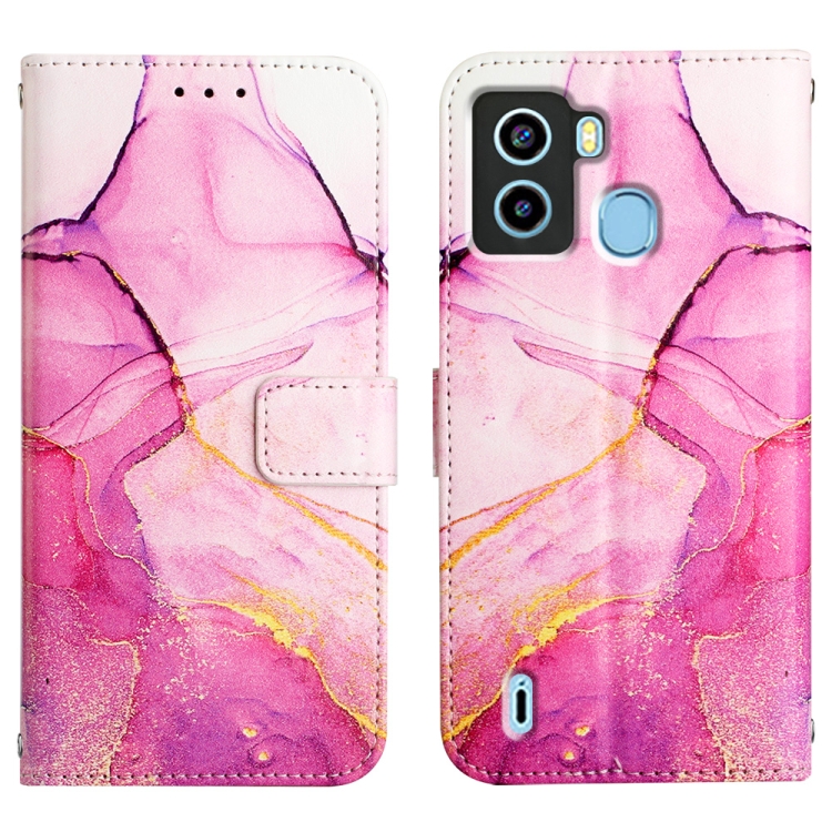 Funda para Tecno Pop 6 PT003 con Tapa de Cuero y Patrón Mármol (Oro Rosa Púrpura)