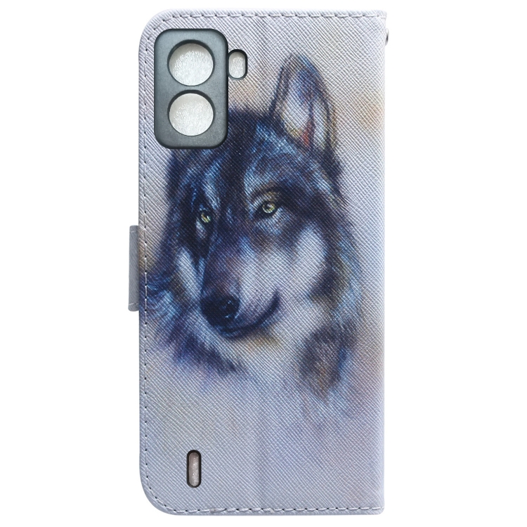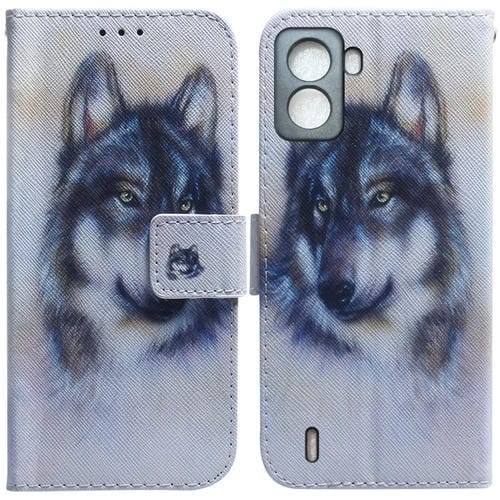 Funda de Cuero para Tecno Pop 6 con Dibujo Coloreado y Protección sin Huellas (Lobo Blanco)