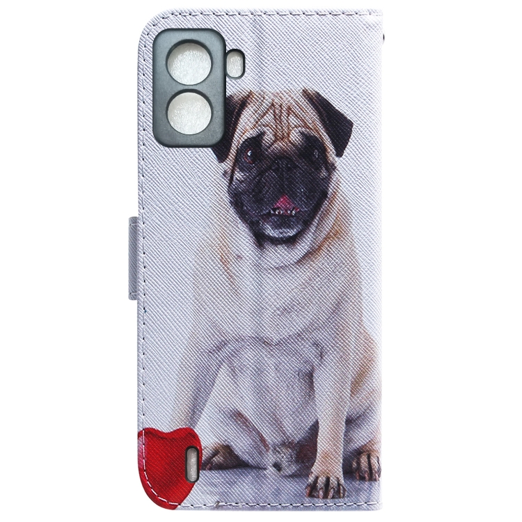 Funda de Cuero para Tecno Pop 6 con Dibujo Coloreado y Protección sin Huellas (Pug)
