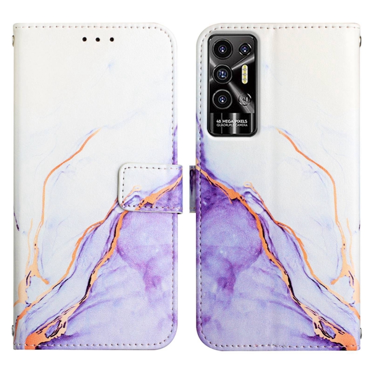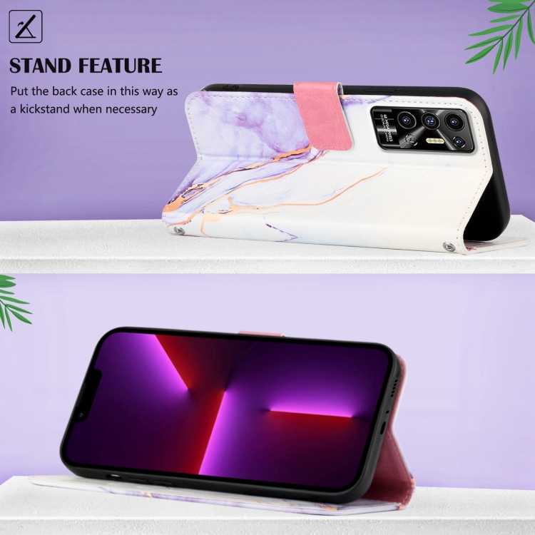 Funda de Cuero para Tecno Pova 2 Pt003 con Patrón de Mármol (Blanco Purple)