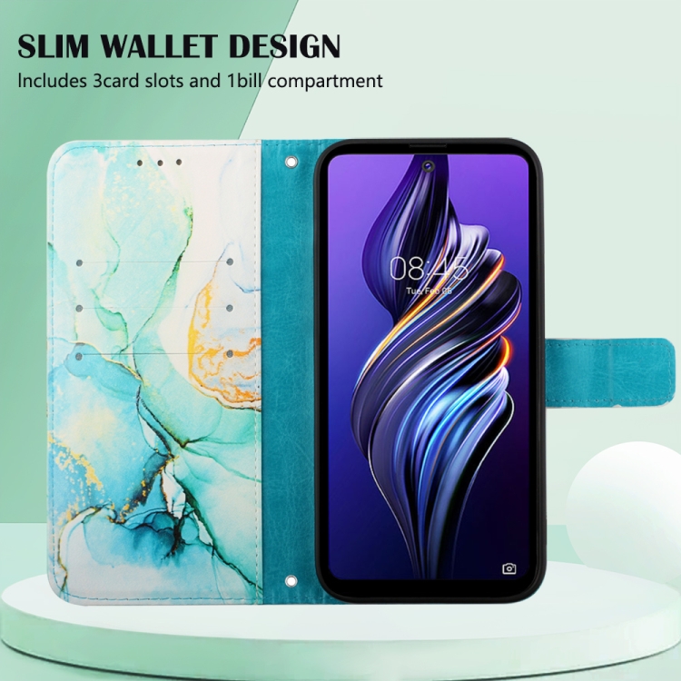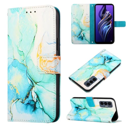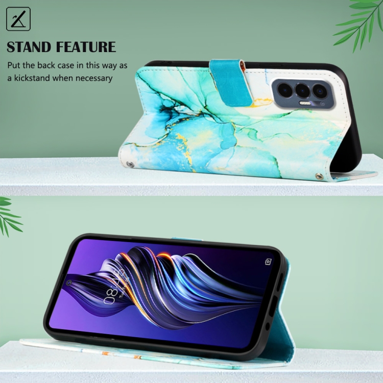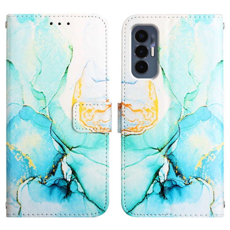 Funda de Cuero con Tapa para Tecno Pova 3 Le7 Pt003 Patrón Mármol (Verde)