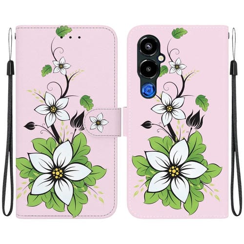 Funda de Cuero para Tecno Pova 4 Pro con Dibujo Coloreado y Textura de Cristal (Lily)