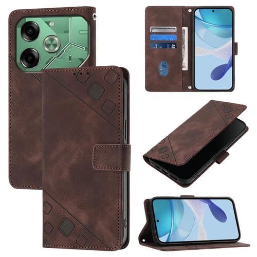 Funda de Cuero para Tecno Pova 6 Skin Feel en Relieve (Marrón)