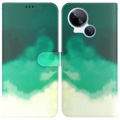 Funda para Tecno Spark 10 5G con Tapa de Cuero y Patrón de Acuarela (Verde Cian)