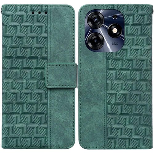Funda de Cuero para Tecno Spark 10 Pro con Relieve Geométrico (Verde)