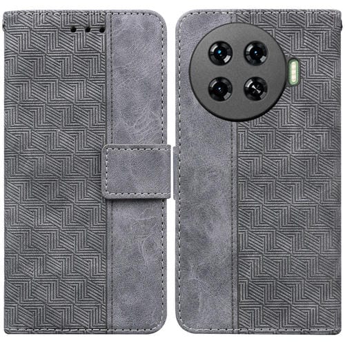 - 1x Funda de Cuero para Tecno Spark 20 Pro + 4G con Relieve Geométrico (Gris)