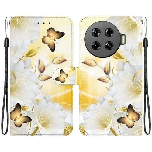 Funda de Cuero para Tecno Spark 20 Pro + 4G con Dibujo Coloreado y Textura de Cristal (Epiphyllum de Mariposa Dorada)
