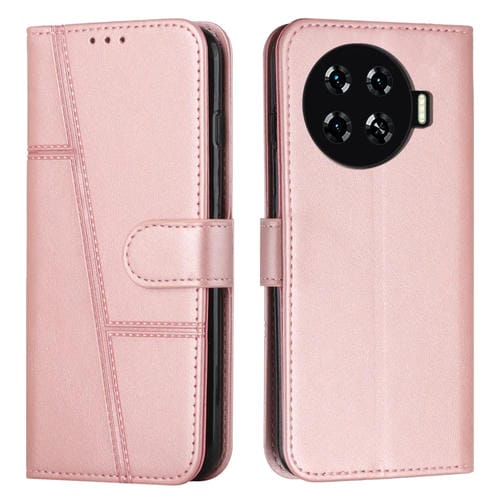 Funda para Tecno Spark 20 Pro de Cuero con Hebilla y Textura de Becerro con Costura (Oro Rosa)