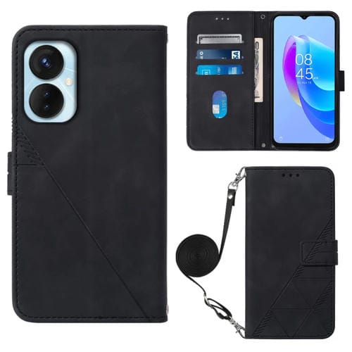 Funda de Cuero para Tecno Spark 9 Pro y Spark 9T Crossbody con Tapa En Relieve (Negro)