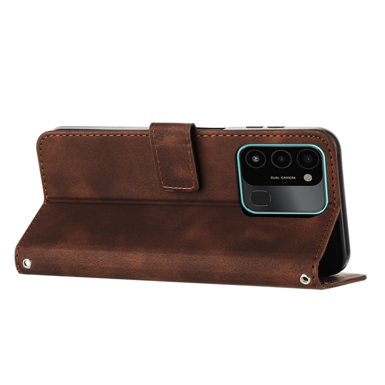 Funda de Cuero para Tecno Spark Go 2022 Dream Triangle con Cordón (Marrón)