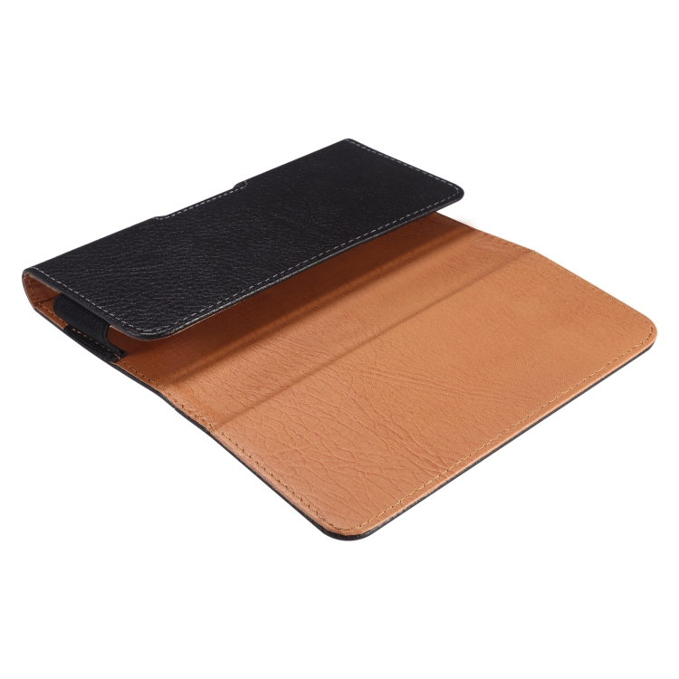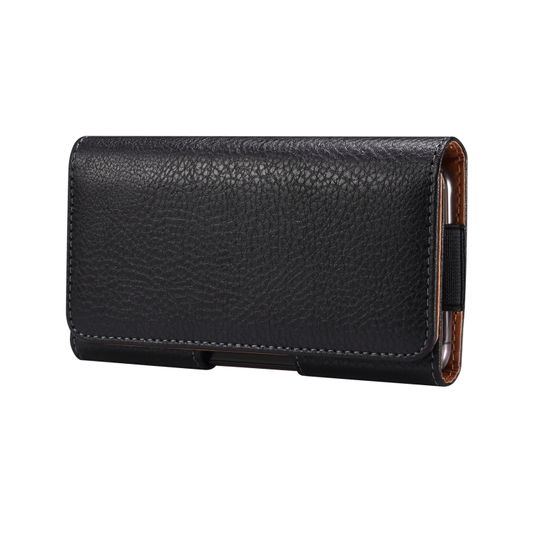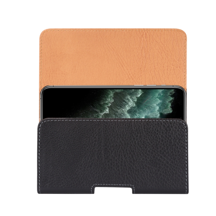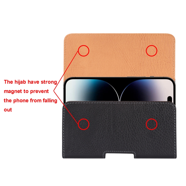 Funda para Teléfono 6,2-6,5 Pulgadas con Textura Litchi, Clip de Hierro y Hebilla Trasera (Negro)