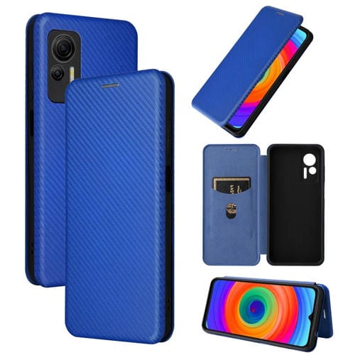 Funda para Ulefone Note 14 con Tapa de Cuero y Textura de Fibra de Carbono (Azul)